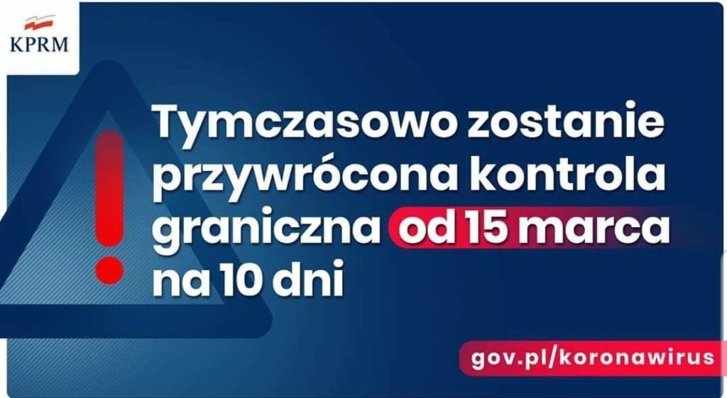 Polska od jutra (14.03) wprowadza stan zagrożenia epidemicznego i zapowiada przywrócenia kontroli granicznych. Premier Morawiecki zapowiada też wprowadzenie zakazu wjazdu dla cudzoziemców i zawieszenie międzynarodowych połączeń lotniczych. Granice zostaną zamknięte na 10 dni. Po przekroczeniu granicy obywatele zostaną skierowani na 14-dniową kwarantannę.