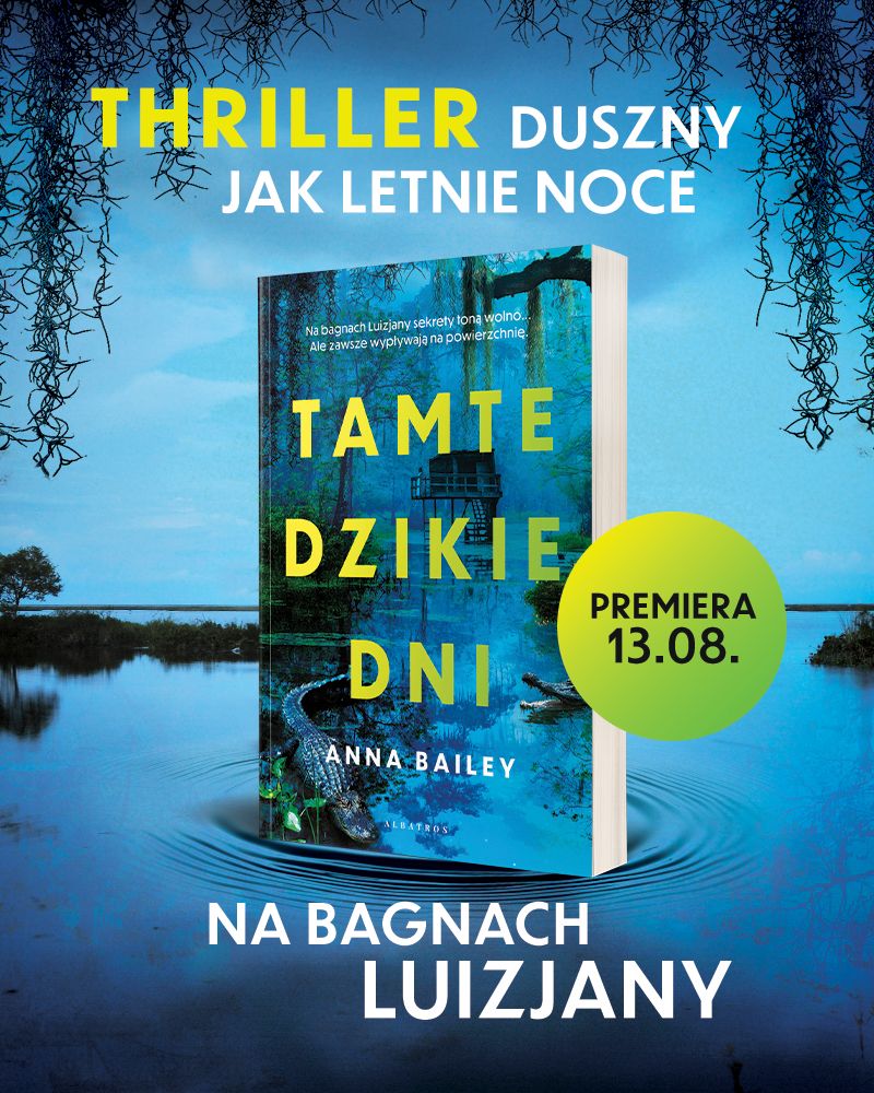 Mroczne mokradła, hermetyczna społeczność i tajemnica, która nie daje spokoju — w „Tamtych dzikich dniach” Anna Bailey wraca do tego, co czytelnicy pokochali w jej debiucie: do gęstej atmosfery małego miasteczka, w którym każdy zna każdego, a jednocześnie nikt nie wie nic na pewno. To thriller o pamięci i zdradzie, o odrzuceniu i potrzebie odkupienia, ale przede wszystkim — o odwadze jednej dziewczyny, by podważyć wersję wydarzeń, która wszystkim wygodnie układa się w schemat.